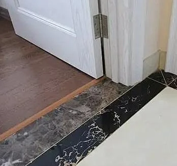 与地板衔接:用“T”字/“L”字金属压条,2mm极窄,和门套铜色统一